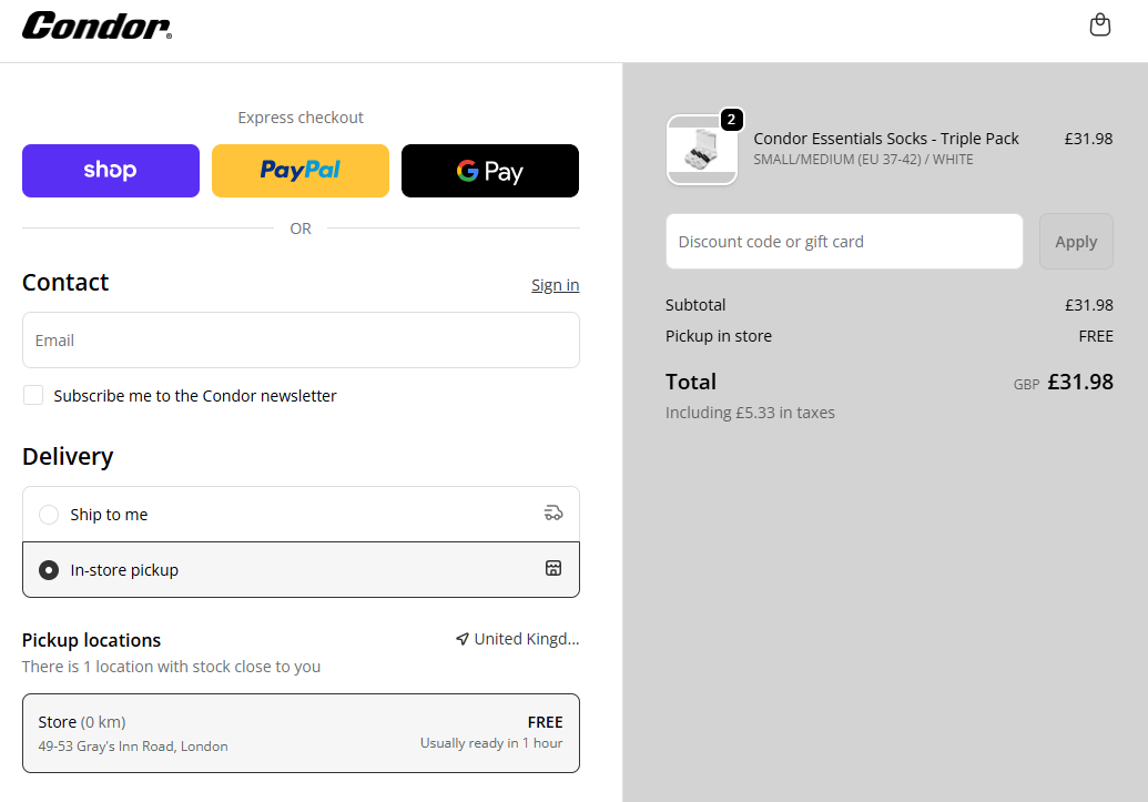 To place a store pickup order, simply proceed to checkout and under the Delivery options select In-store pickup.